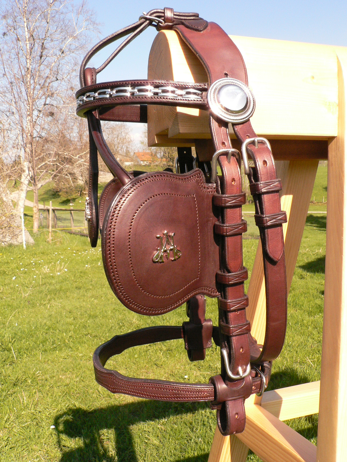 Präsentations Fahrzaum 100% Leder: Preis auf Anfrage Möglichkeiten: Monogramme, Kontrastnähte |